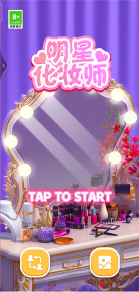1、打开游戏后,左侧选项框可以选择待化妆改造的人物,右侧相册用于保存完成妆容后拍摄的照片,点击“TAP TO START”进入流程;