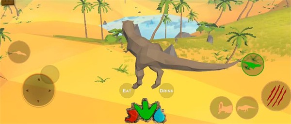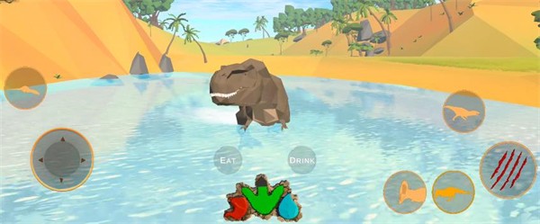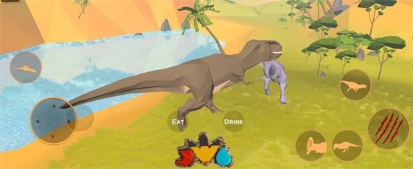 5、攻击其他恐龙可将其吞食,吃掉对方能恢复自身生命值和能量,饥渴值可以通过喝水恢复。