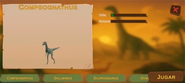 2、点击按钮后可选择恐龙种类,选好种类后点击右下方的按钮正式开始;