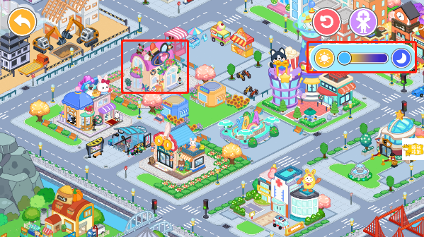 1、进入游戏,可以通过右上方滑轮切换当前时间对应的风景,选择不同建筑就能进入相应场景;
