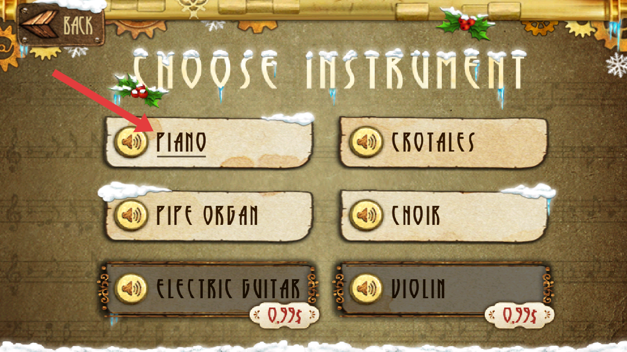2、在乐器选择页,点击【PIANO】,用钢琴音色进行演奏闯关;
