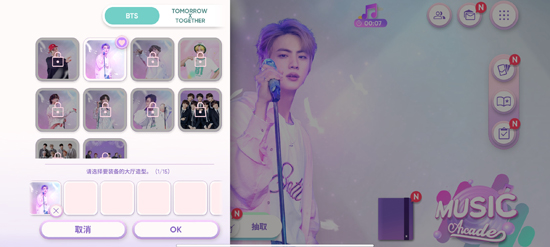 3、从现有四个偶像组合中,挑选一个要一起玩的组合;