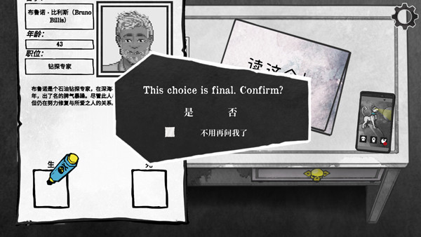 5、可以查看每个人的专属资料表,据此决定其生死走向;