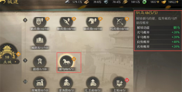 1.驯马场的等级直接决定了产出品质的上限,建议至少将驯马场升至3-4级后再开启大规模驯马,此时中高品质马匹的产出概率将趋于稳定,资源收益比最高。