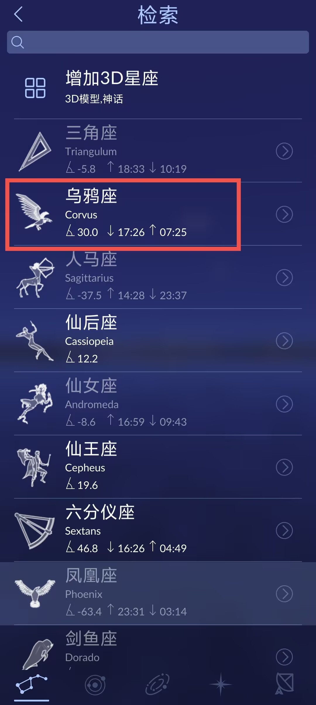 2、下滑找到感兴趣的星座;