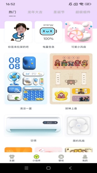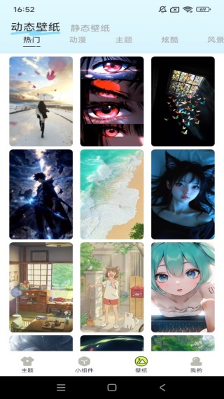 3、软件内小组件素材丰富,热门主题壁纸齐全,随时搜索喜欢的壁纸或小组件素材;