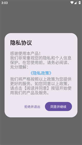 1、打开app,阅读隐私政策协议之后点击同意并继续;