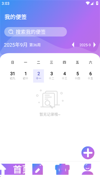 2、进入首页可以看到自己添加的便签,能够随时添加记录;