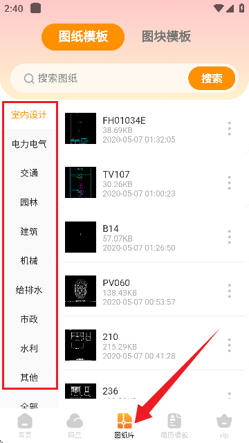 8、图纸库内置各行业现成模板,另含简历模板可供使用。