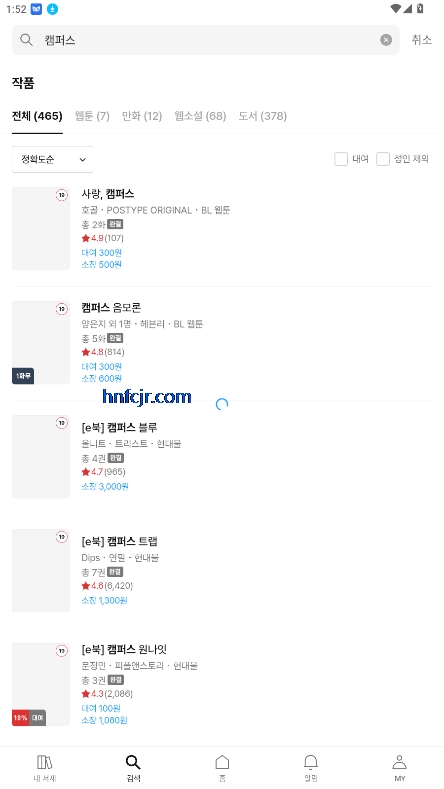 Ridibooks是一款韩国线上阅读应用,它的核心服务范畴就是高质量漫画(包括韩漫、国漫、日漫、美漫等)、电子书籍以及网络小说,其中作为韩国软件,韩漫自然是首当其冲最受读者喜欢,应用里面聚集了很多类型的漫画,包含有悬疑、职场、校园、恋爱以及奇幻等多元题材,有很大的阅读广度。
