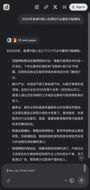 2、无论是日常生活的小知识,还是专业领域的深入探讨,Grok都能提供快速而准确的回答;